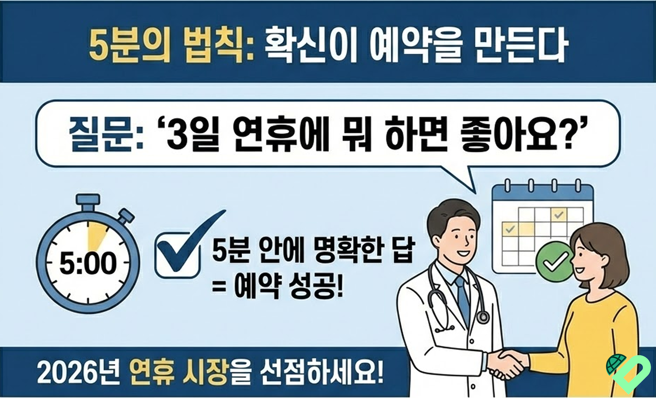 지금 우리 병원 상담실에 일본 환자가 "3일 연휴 동안에 뭘 추천하나요?"라고 물어본다면, 5분 안에 명확한 답을 줄 수 있나요? 이 질문에 "예"라고 답할 수 있다면, 2026년 연휴 시장은 이미 절반은 잡은 셈입니다.